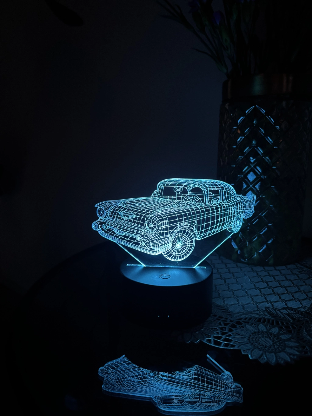 Voor de echte autoliefhebber: deze stijlvolle plexiglas nachtlamp met auto-ontwerp. Het 3 mm dikke transparante plexiglas is voorzien van een gedetailleerde lijngravure van een auto, die prachtig oplicht zodra de LED-verlichting wordt ingeschakeld.
